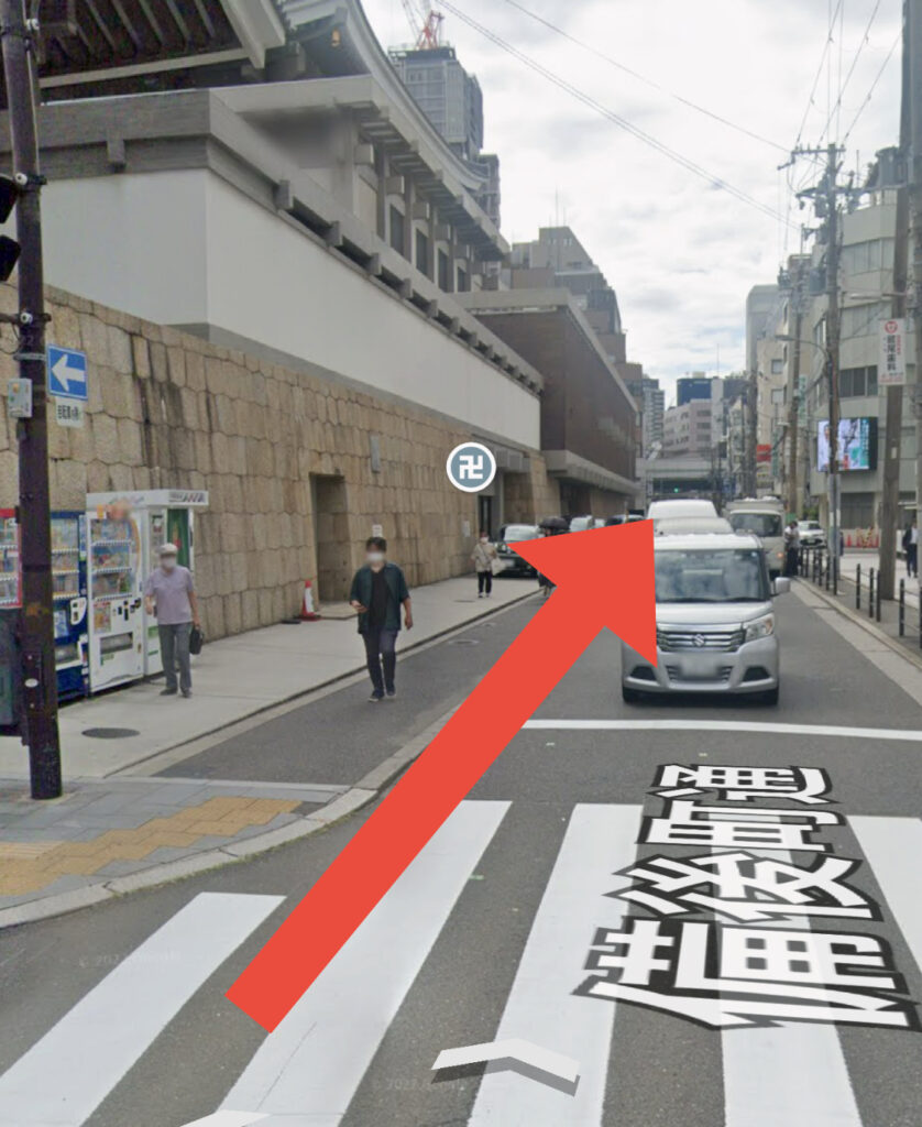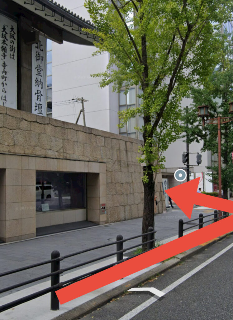 ④ 本願寺、北御堂(最初の角)を左に曲がる