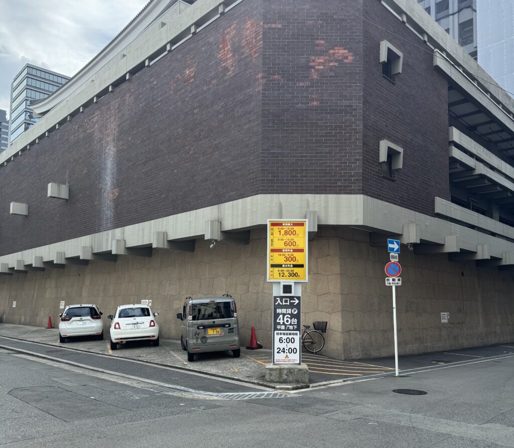 スタジオを出て左手を見ると十字路斜め前すぐ駐車場の看板があります 休日は9:00〜18:00全日600円とリーズナブルな料金になっていますので、ご利用ください