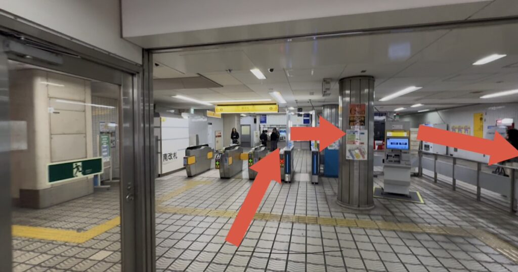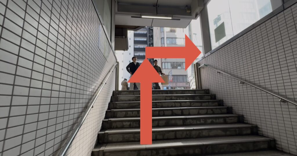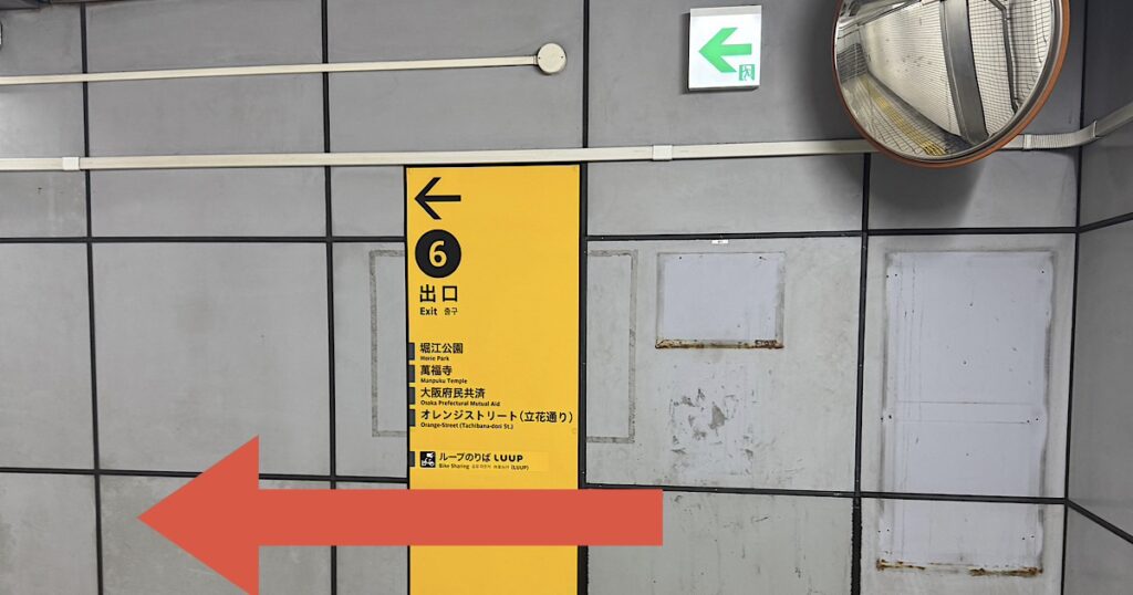エスカレーターを上がると改札がありますので、でて右へ曲がっていくと(Uターン)6番出口が出てきます。