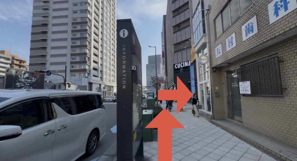 横断歩道を渡ったら左へ進みます。